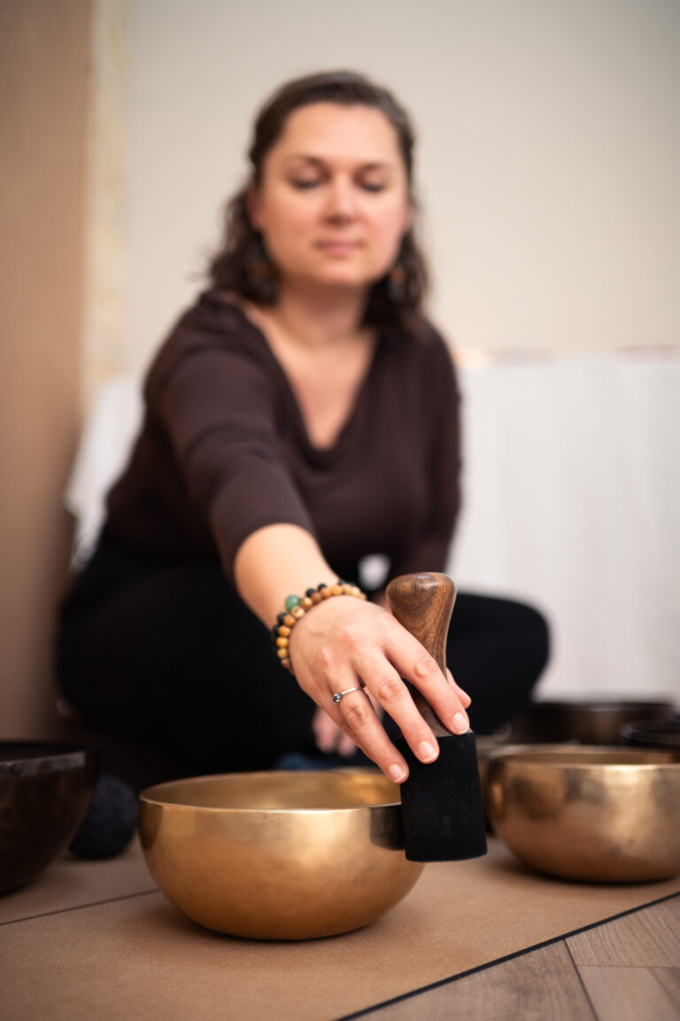 En groupe, confortablement installés dans un espace apaisant, vous serez guidés à travers les vibrations harmonieuses des bols tibétains et autres instruments thérapeutiques. Chaque son entre en résonance avec le corps, le mental et les émotions, pour favoriser un profond état de relaxation.